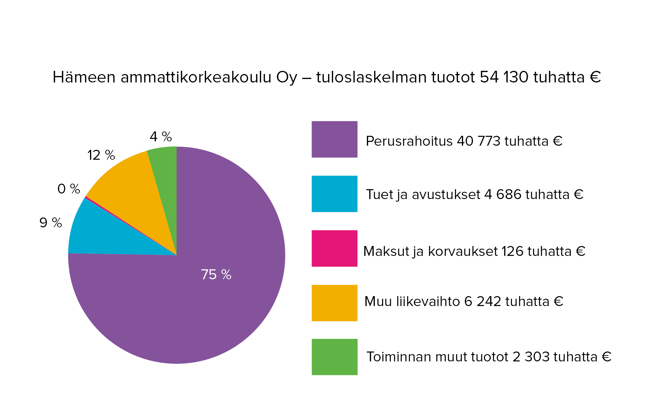 Ammattikorkeakoulun liikevaihto vuonna 2015 oli 52 miljoonaa euroa, valmistus omaan käyttöön 0, 2 miljoonaa euroa sekä muun toiminnan tuotot 2 miljoonaa euroa. Muun toiminnan tuotot ovat pääosin tilavuokria.